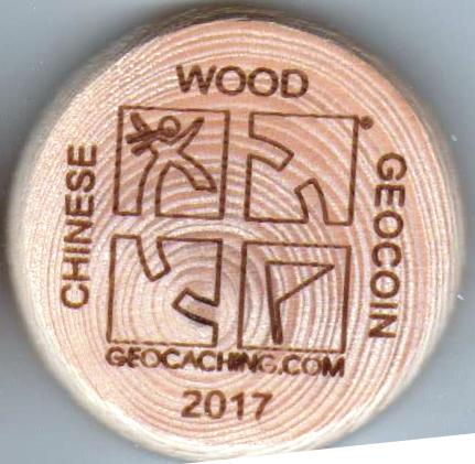 - CHINESE WOOD GEOCOIN jehož motivem je ČÍNSKÝ ZNAK (DRAK) v kružnici - rok 2017; backside: https://prntscr.com/jz3be9